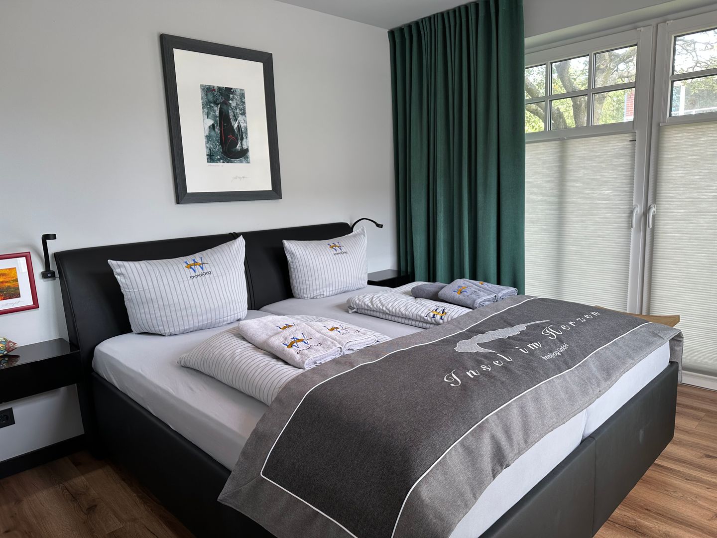 Das Insel-Juwel verfügt über ein helles und einladendes Schlafzimmer sowie ein gemütliches Wohnzimmer, das mit einer Sofaecke und einem Essbereich ausgestattet ist. Hier können Sie entspannen, während Sie einen Film auf dem großen TV über 55 Zoll genießen oder einfach nur die schöne Aussicht durch die Fenster bewundern. Dank der hohen Geschwindigkeit von über 100 Mbit/s können Sie auch problemlos im Internet surfen oder Ihre Urlaubsfotos teilen.