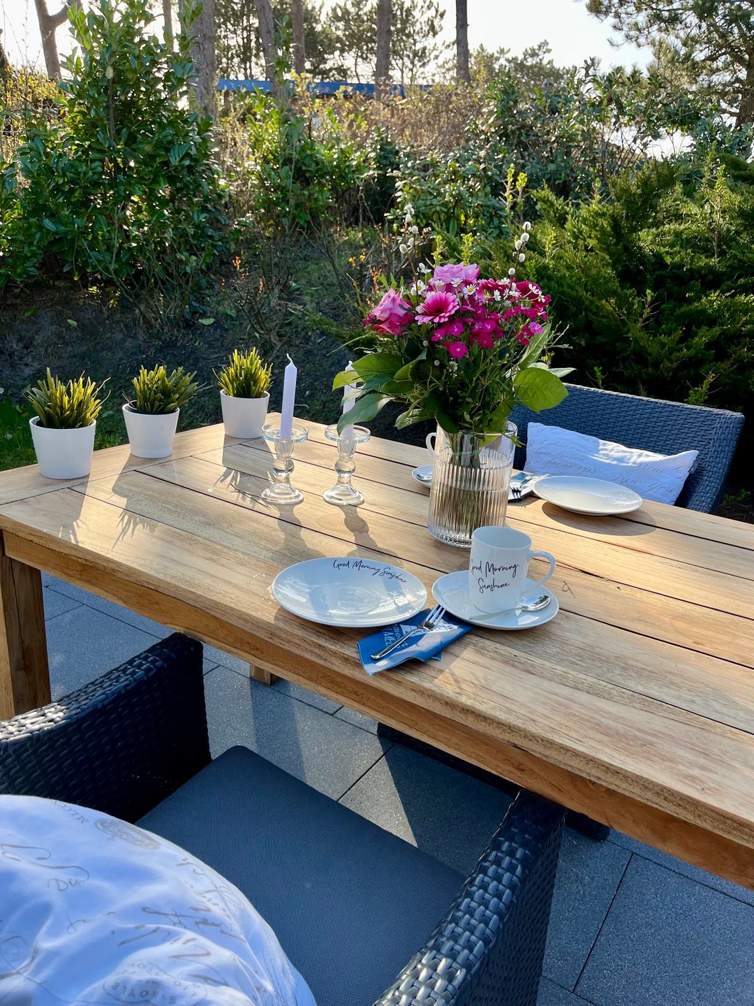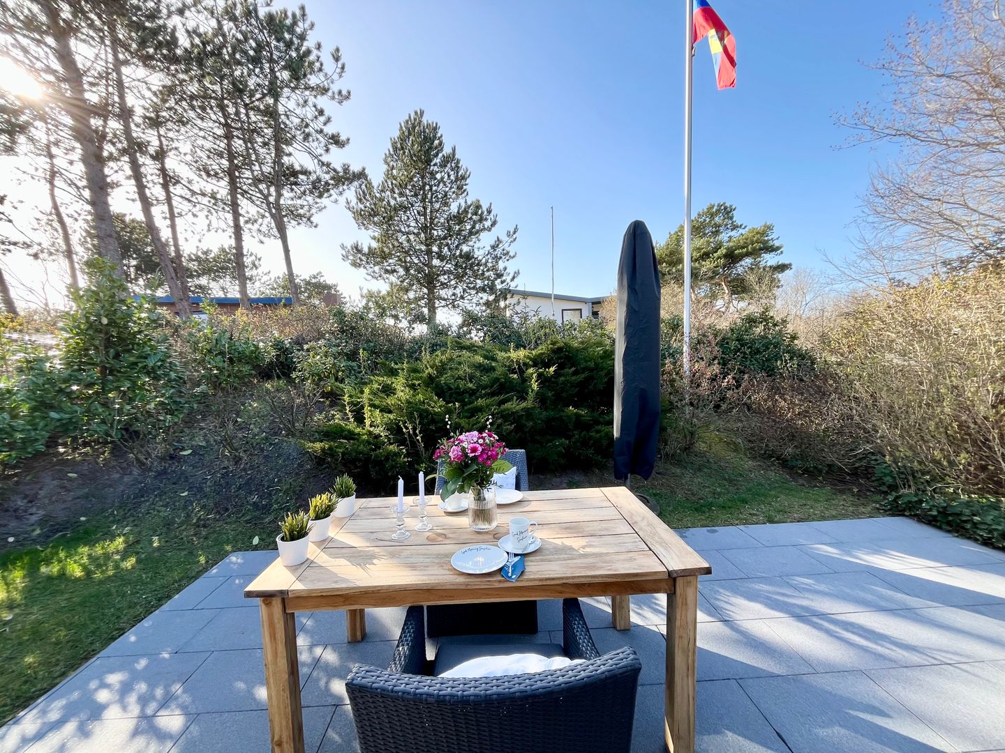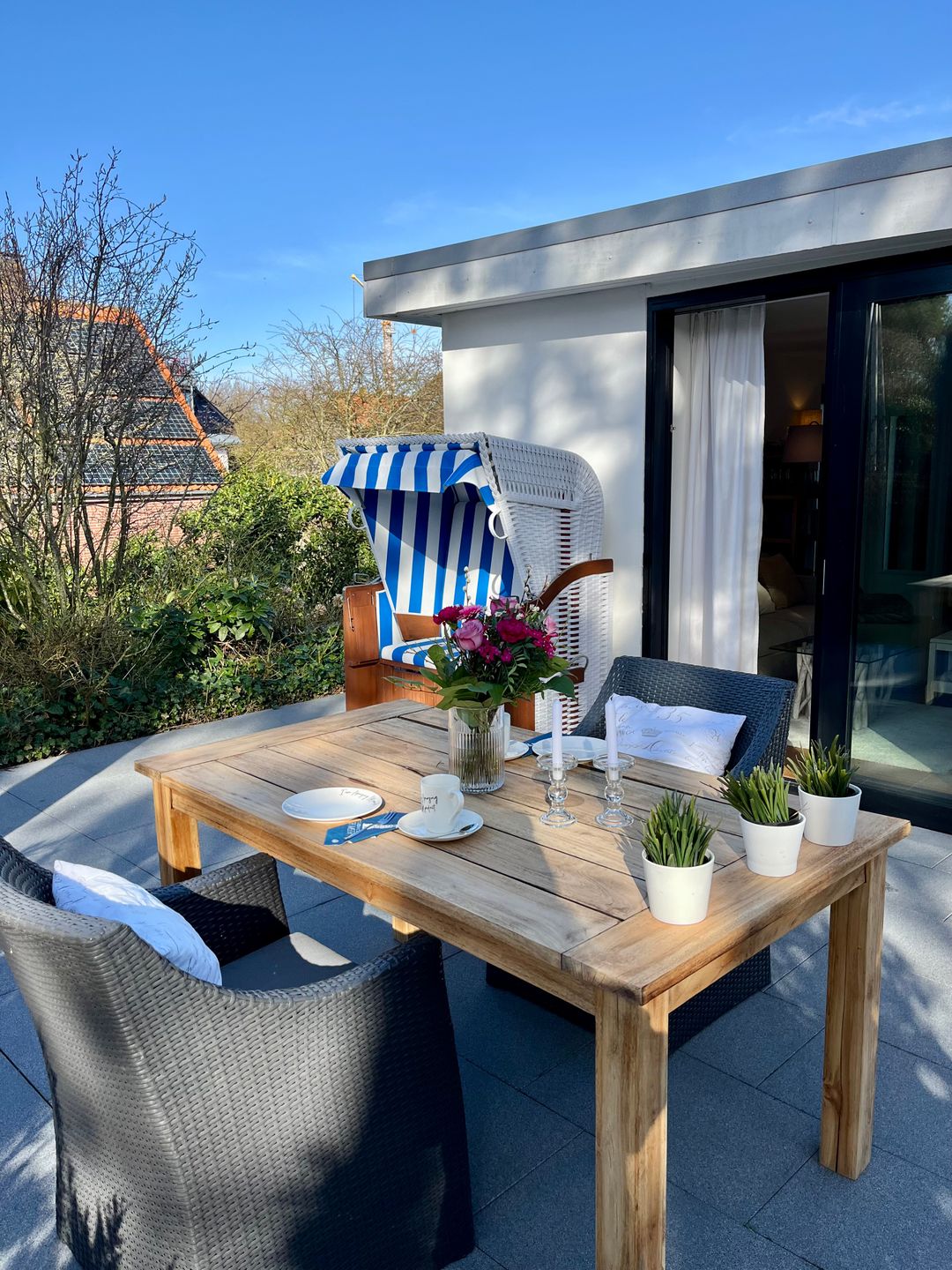 Korbsesseln, entdecken Sie die Dünenlandschaft, die gleich hinter dem Bungalow